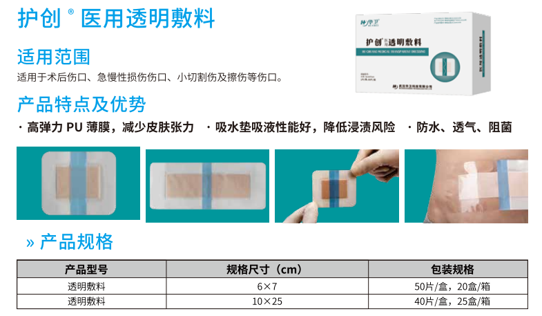 适用于术后伤口、急慢性损伤伤口、小切割伤及擦伤等伤口。