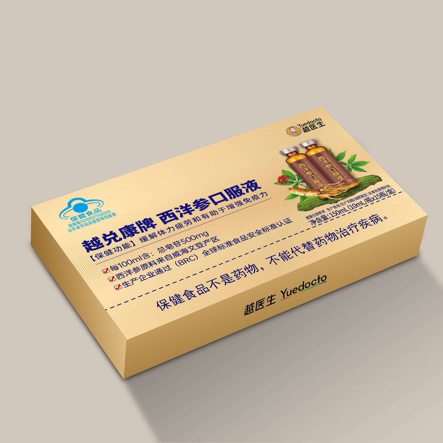 西洋参口服液,文登西洋参蓝帽认证,国越医药越医生越兑康