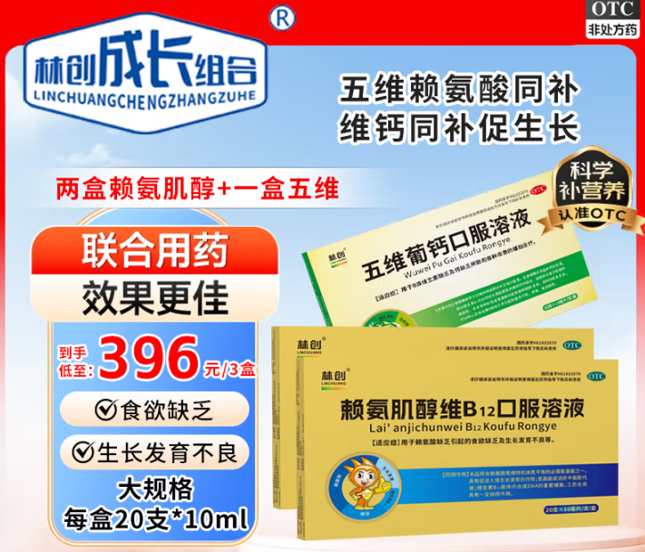 赖氨酸是维持机体氮平衡的必需氨基酸之一。具有促进人体生长发育的作用;肌醇能促进肝中脂肪代谢;维生素B12是体内合成DNA的重要辅酶。三药合用具有一定协同作用。葡萄糖酸钙可以推持神经肌肉的正常兴奋性,促进骨骼与牙齿的钙化形成,配以维生素D:可以促进小肠黏膜刷状缘对钙的吸收,促使钙沉着于新骨形成部位,促进骨钙化及成骨细胞功能和骨样组织成熟。国时B族维生素可以防止因维生素B类缺乏而引起的营养不良、厌食、糙皮病等。